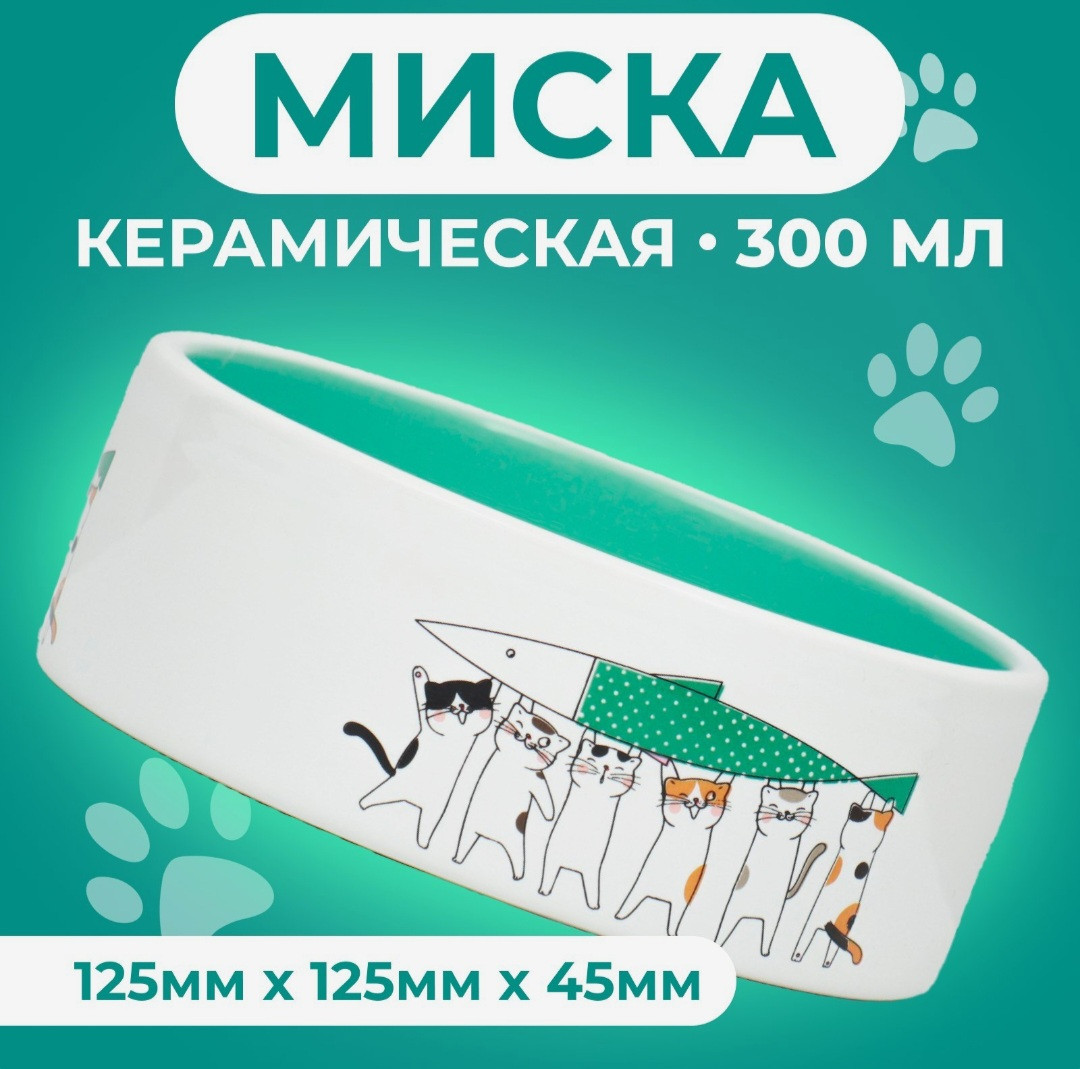 Миска для кошек из высококачественной керамики с рисунком.